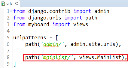 host 주소로 할 경우 http://127.0.0.1/mainlist/ 의 주소로 이동 시