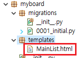 templates폴더 안에 먼저 메인 페이지인 MainList.html을 만들어 줌