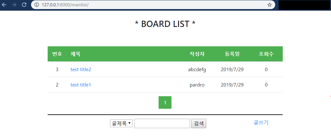위의 코드들을 완벽하게 수행 하면 다음과 같이 메인페이지를 출력 할 수 있다.